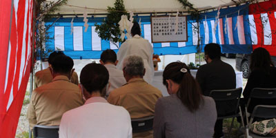 地鎮祭や開所式、工事安全祈願、入居清祓など、神職が出向して行う出向祭のご案内です。